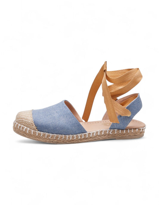 Alpargata azul denim con cintas mostaza | Espadrilles verano mujer 2025
