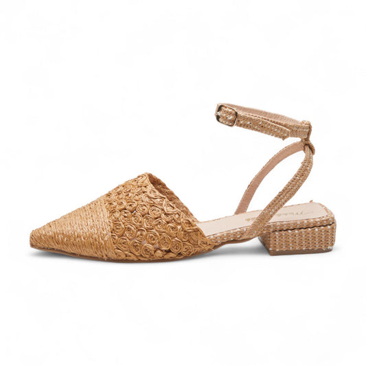 Sandalia plana beige tejida con pulsera | Flats casuales mujer 2025