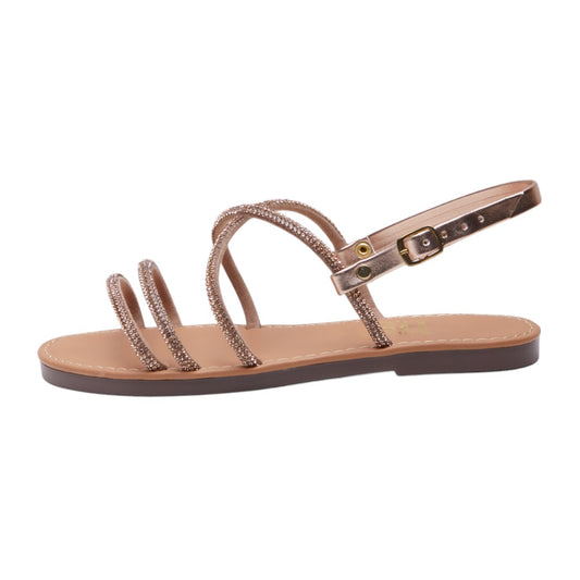 Sandalia Plana Diseño Cruzado con Brillo y Soporte Tobillo Dorado dv2925