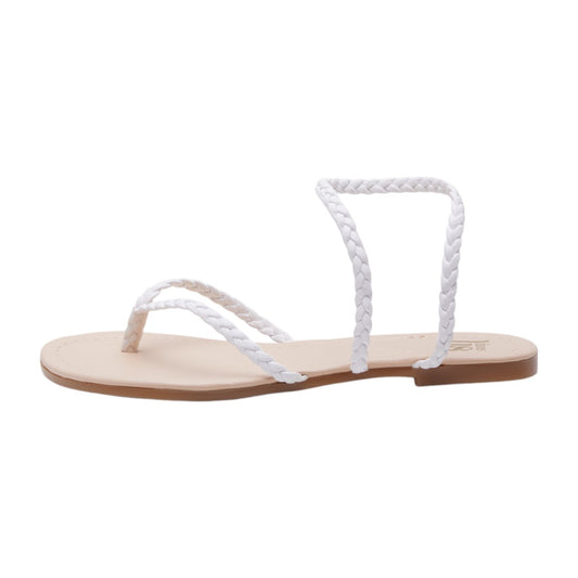 Sandalia Plana de Dama Tipo Piel Trenzada Metedera Blanca dv2925