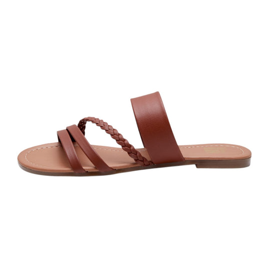 Sandalia Plana de Dama Tipo Piel Trenzada Metedera Café dv2925