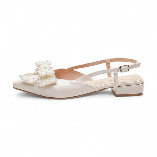 Sandalia plana nude satín con moño perlas | Zapatos elegantes mujer 2025