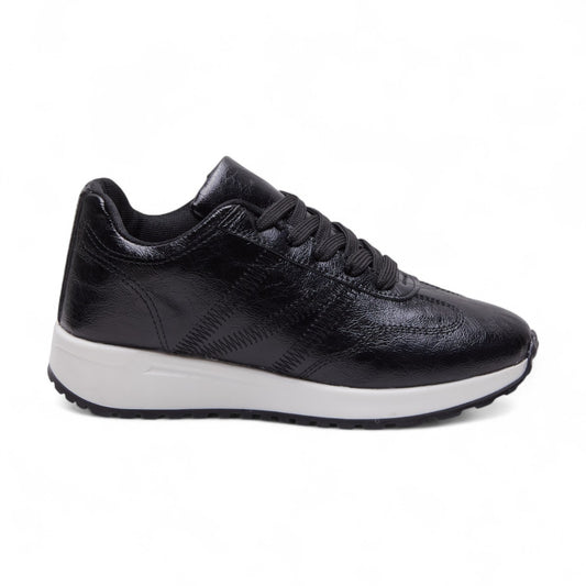 Tenis casuales urbanos para mujer en material sintético tipo piel con punta redonda color negro dv2925