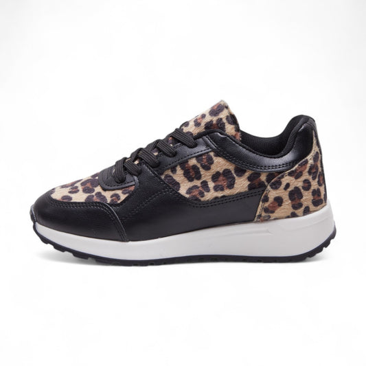 Tenis casuales urbanos para mujer en material sintético tipo piel con punta redonda multicolor con estampado animal print dv2925