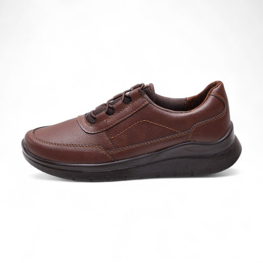 Tenis formales para dama en color café material tipo piel con punta redonda, agujetas, cortes decorativos y suela confort negra dv2925