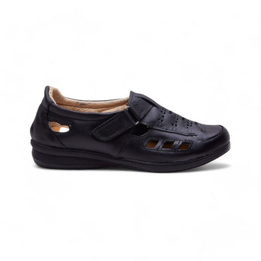 Zapato Mujer Negro Piel Aberturas Decorativas dv2925