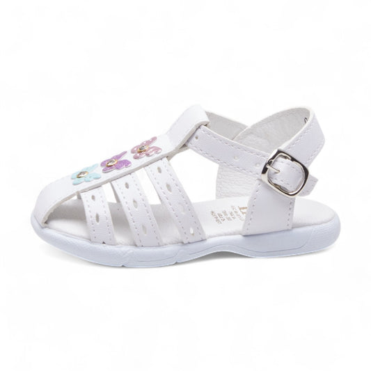 Sandalia Blanca con Brillantes Plateados y Correa en Tobillo dv2925