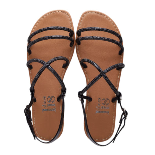 Sandalia Negro con Brillo y Correa en Tobillo dv2925