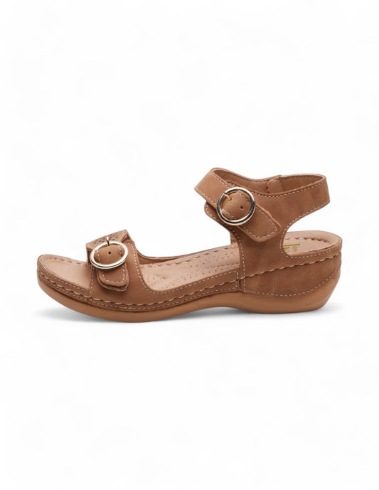 Sandalia Mujer con Herrajes Tipo Piel Suela Madera dv2925