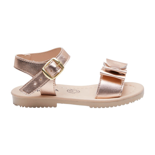 Sandalias Planas de Niñas Metálicas con Moño Decorativo Doradas dv2925
