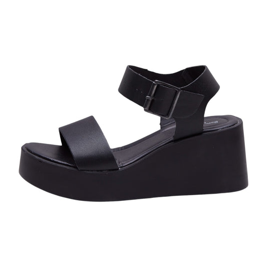 Sandalias plataforma para dama, altura de 10 cm, material sintético tipo piel, diseño clásico color negro dv2925