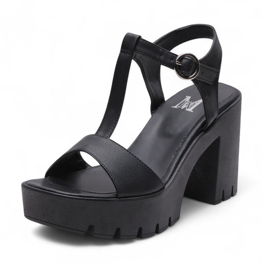 Sandalias negras de tacón alto para dama con plataforma y correa ajustable, diseño elegante y cómodo dv2925