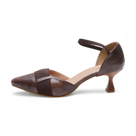 Zapatillas de tacón para dama con punta en pico y tira en gamuza, diseño elegante y cómodo color café dv2925